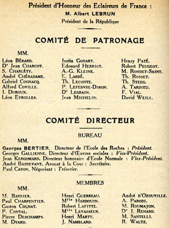 Il est à noter que cet objectif de formation d’une élite restera présent chez Georges Bertier et se traduira, en particulier, par une participation aux travaux d’Alexis Carrel et à l’équipe de Jérôme Carcopino pendant la période de l’État Français. Si l’on en juge d’après ces deux premières expériences, c’est celle de Georges Gallienne qui se rapproche le plus de ce que vont devenir les Éclaireurs de France, aussi bien à travers l’action d’André Lefèvre – en particulier à la Maison pour Tous de la rue Mouffetard – que dans ses orientations ultérieures vers la démocratie et l’implication sociale.