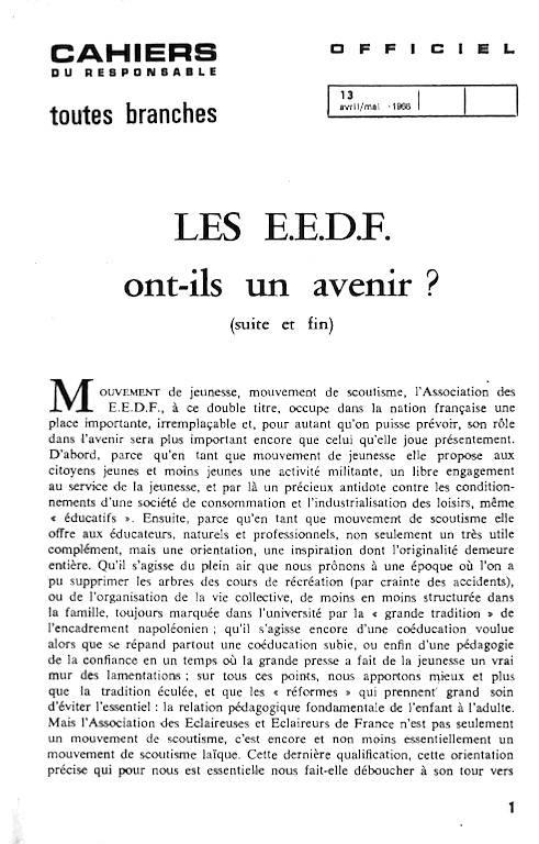 Cet article est développé sur trois numéros successifs des « Cahiers » de 1966, que nous avons retrouvés.