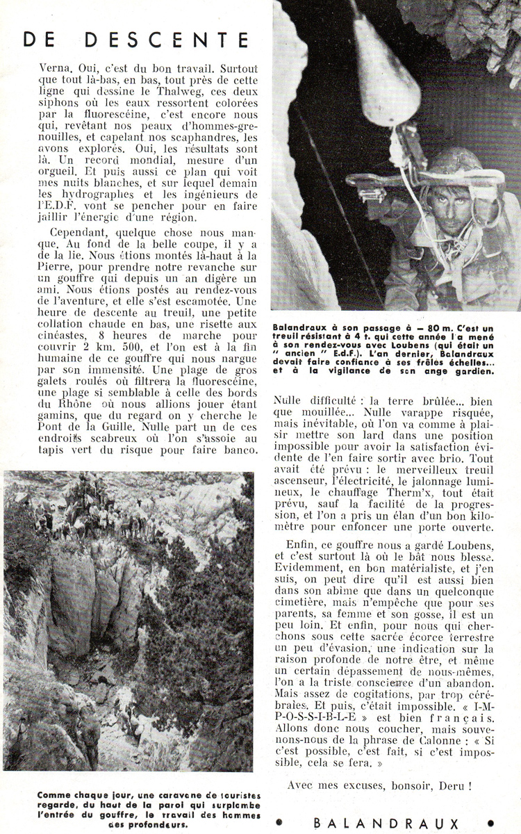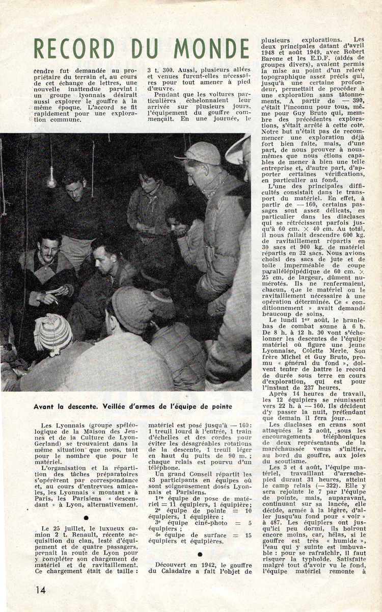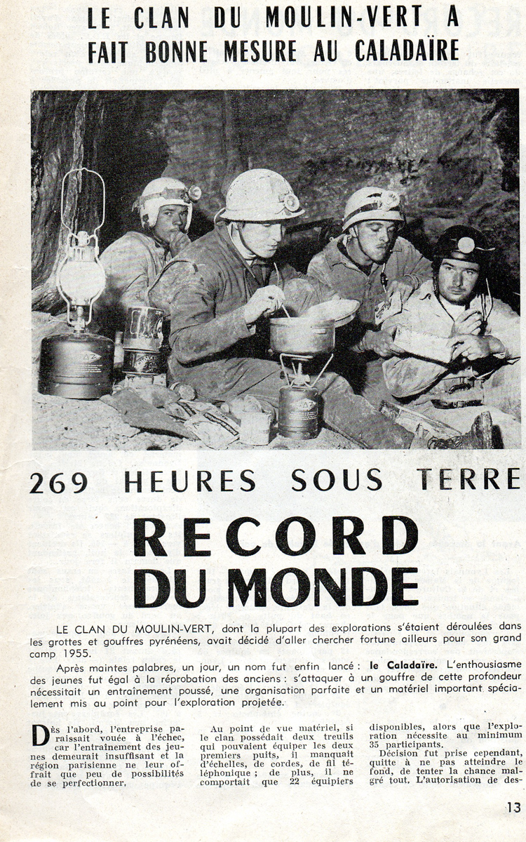 En 1956 : le clan du Moulin Vert de Paris explore la gouffre du Caladaire :