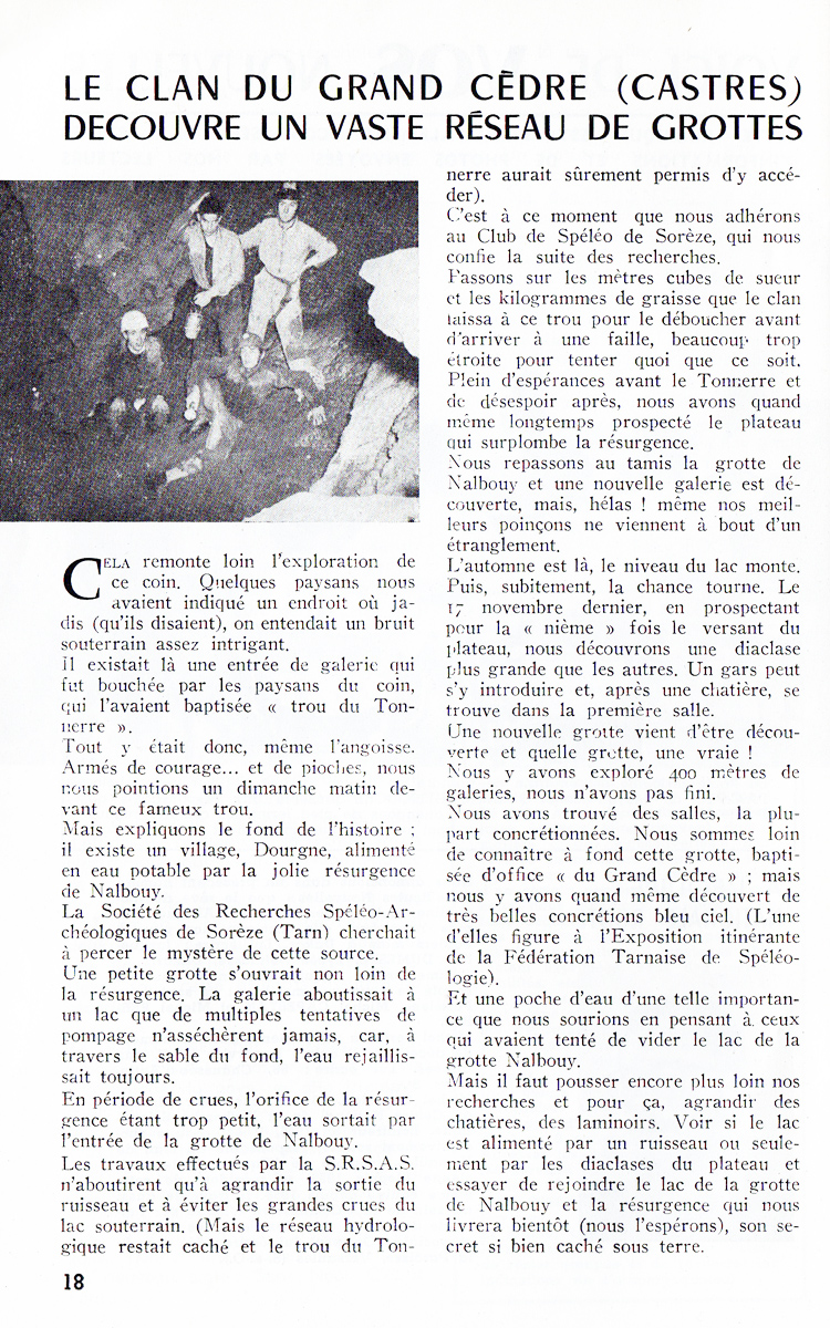En 1958, le clan de Castres se met aussi à l’exploration de grottes :