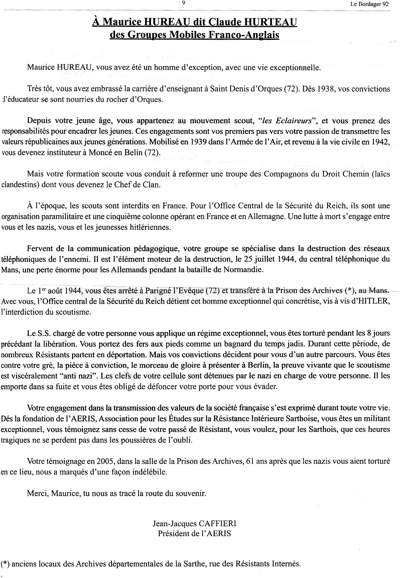 Jean-Jacques Gauthé nous signale un ouvrage paru récemment : « Le scoutisme dans la Sarthe » qui évoque l’engagement d’un groupe d’E.D.F. dans la Résistance, autour de Maurice Hureau.