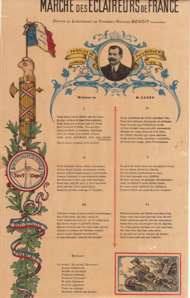 Nicolas Benoît, à l’origine de la création des Éclaireurs de France en décembre 1911, est une grande figure de notre Mouvement. Disparu au combat dès le début de la « Grande guerre », il a laissé, à titre de « testament », un ouvrage de réflexion sur « La voie du chevalier », écrit sous le nom de Victor Morgan. Quelques documents évoquent sa mémoire.