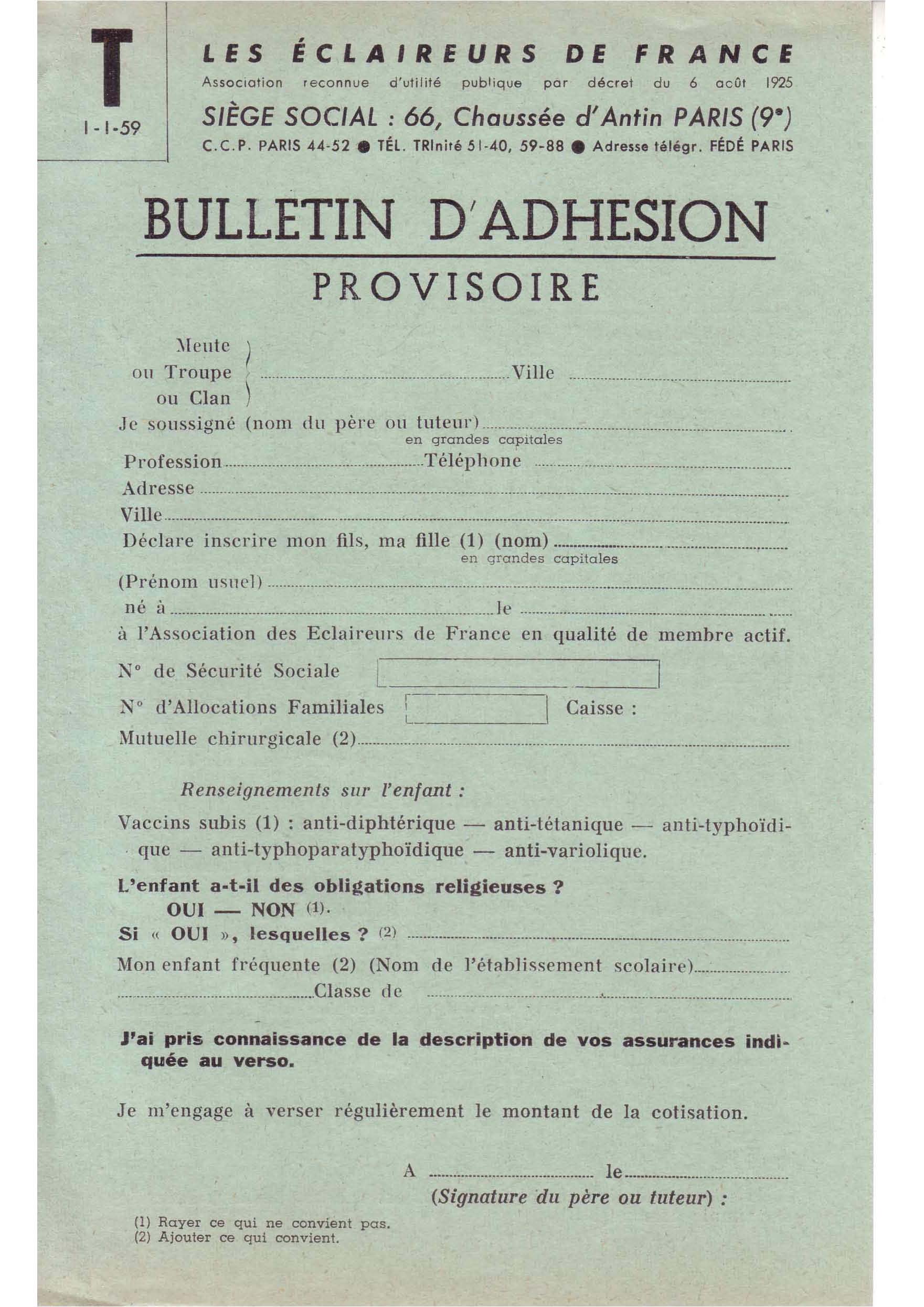 – qui ne peut être suivi que d’un bulletin d’adhésion :
