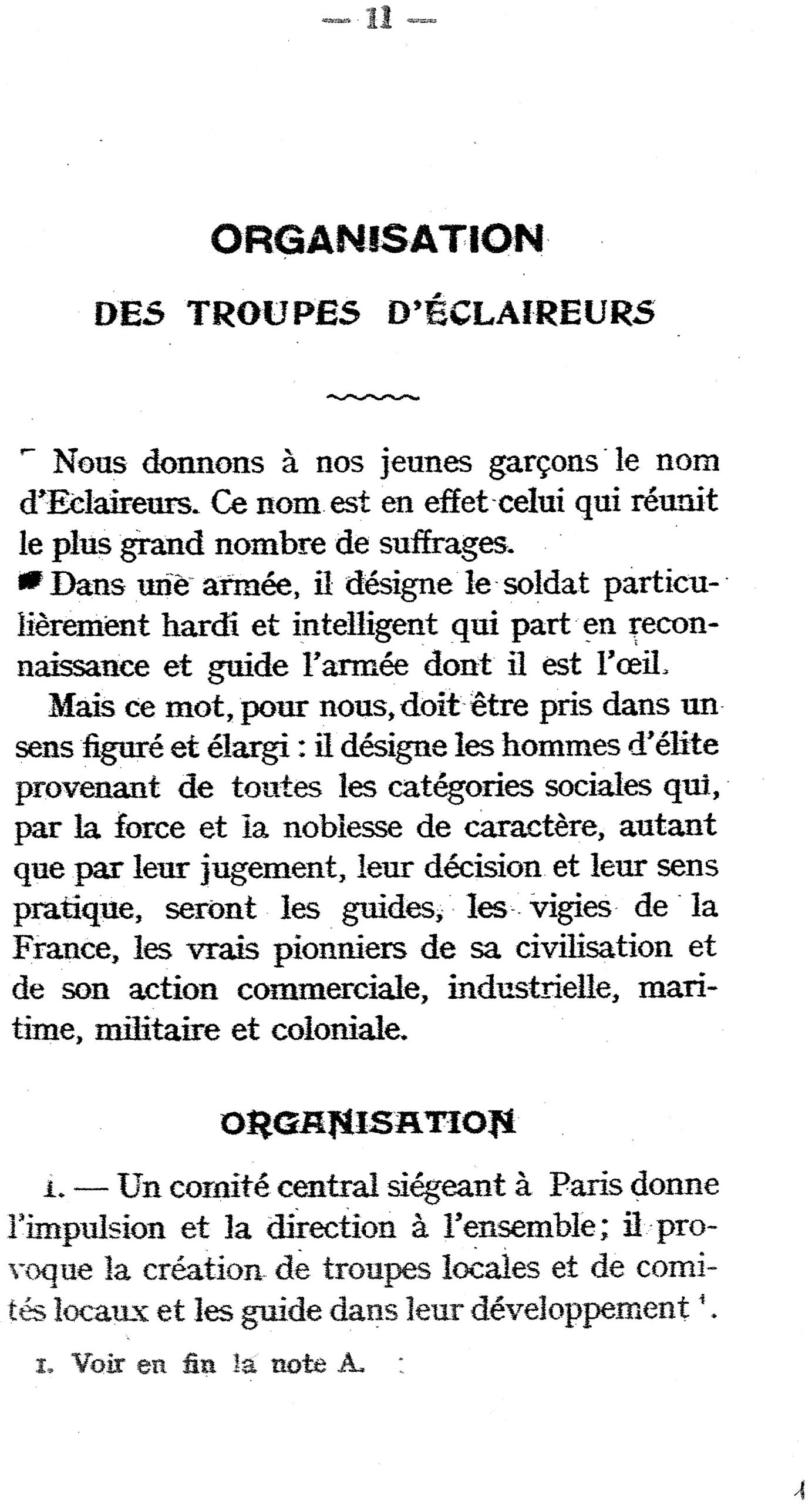 Suivent quelques chapitres de définitions du fonctionnement des « troupes d’éclaireurs », à partir d’un « comité local ». Et, pour commencer, une explication du choix du nom d’« éclaireurs » :