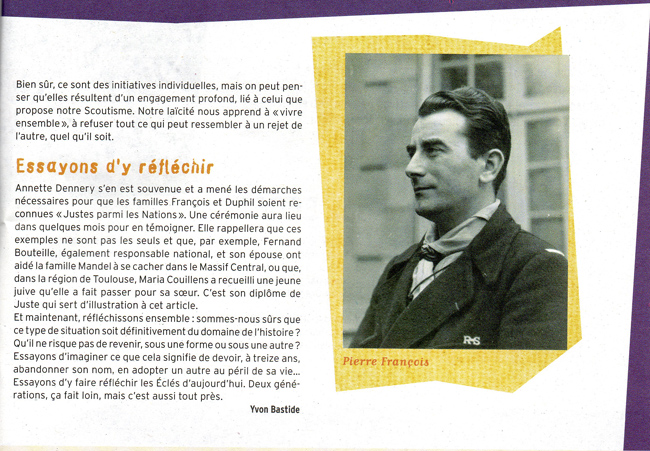 Qu’il ne risque pas de revenir, sous une forme ou sous une autre ? Essayons d’imaginer ce que cela signifie de devoir, à treize ans, abandonner son nom, en adopter un autre au péril de sa vie… Essayons d’y faire réfléchir les éclés d’aujourd’hui. Deux générations, ça fait loin, mais c’est aussi tout près ».
