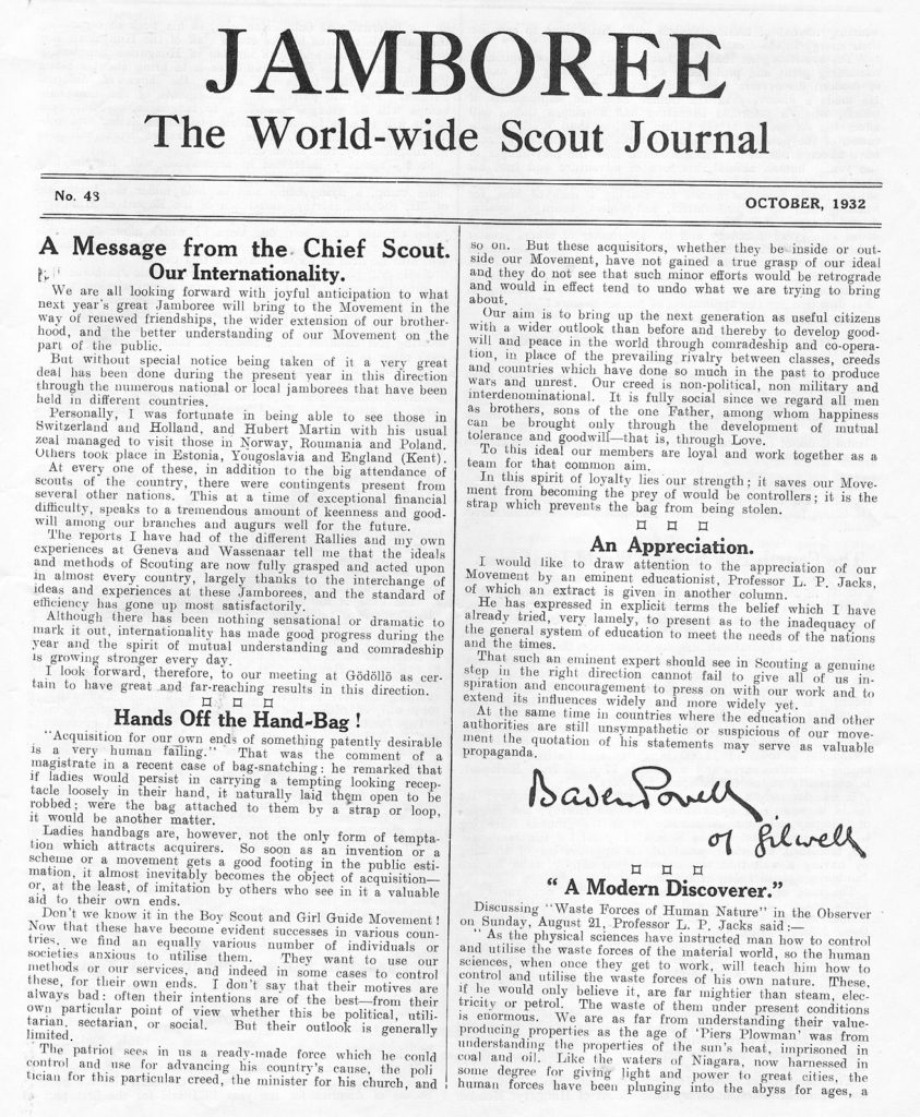 1932.10 : B.P. évoque la citoyenneté dans la revue « Jamboree »