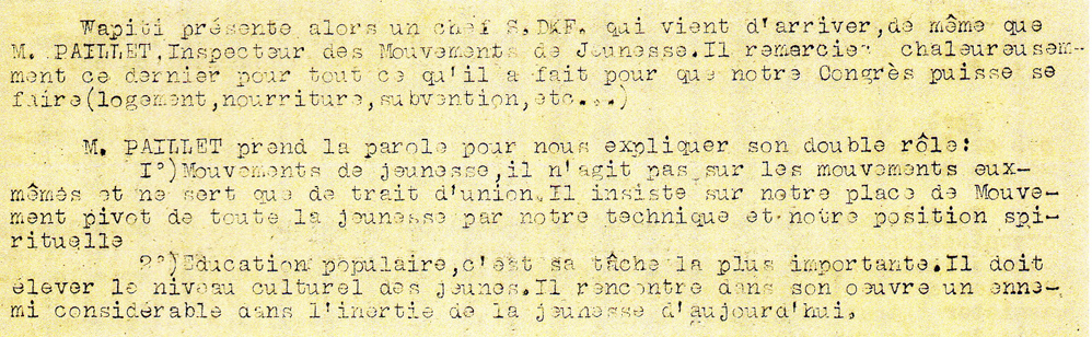 Nous avons repris également une intervention d’un inspecteur « des Mouvements de Jeunesse » et la conclusion d’Eugène Arnaud sur l’orientation du Mouvement vers les sociétés de jeunes, un jeu à jouer réellement.