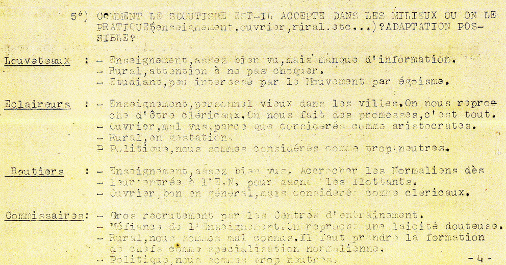 – comment le scoutisme est-il accepté dans le milieu où on le pratique (enseignement, ouvrier, rural, et…) Adaptations possibles ?