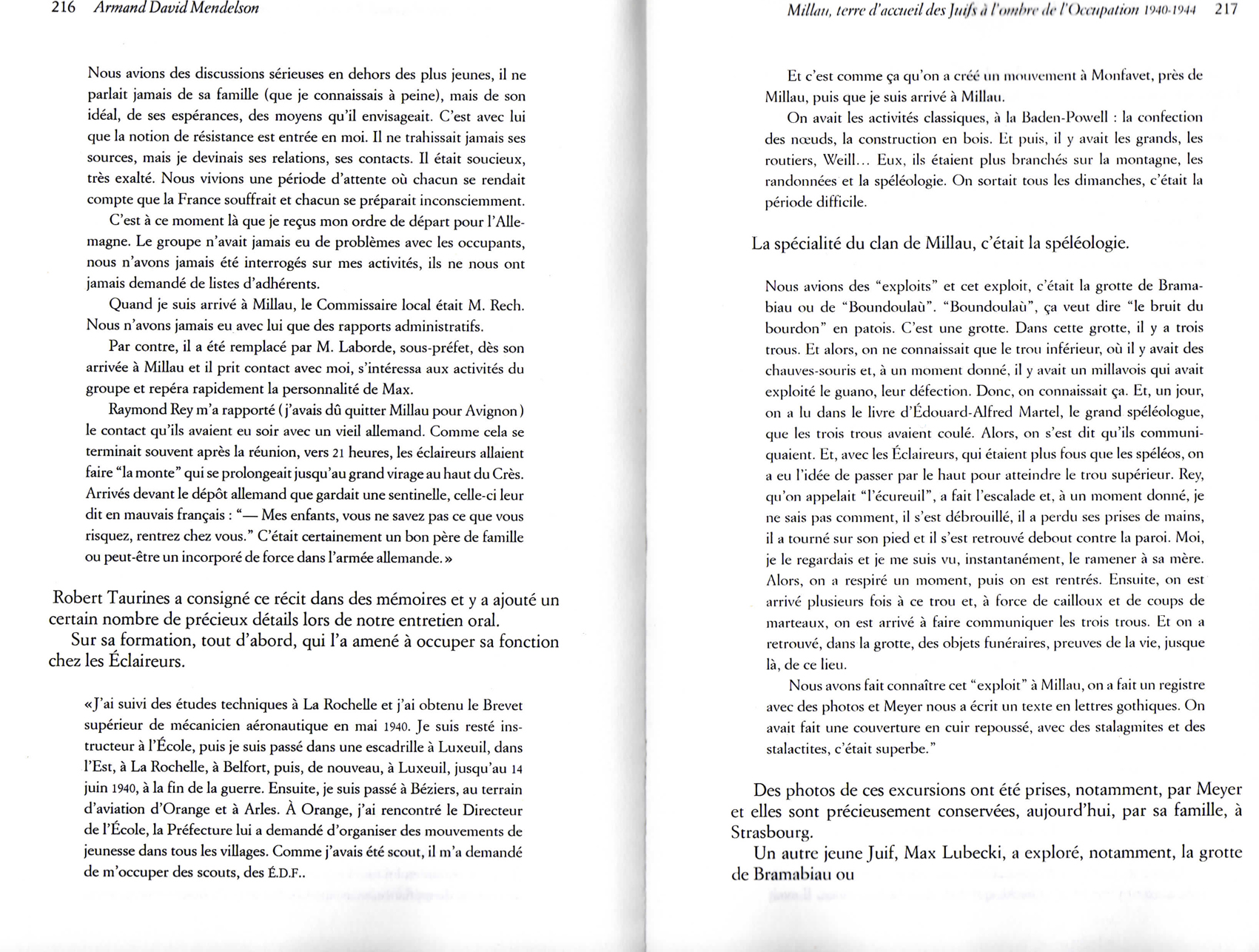 Dans un ouvrage intitulé « Millau, terre d’accueil des Juifs à l’ombre de l’Occupation, 1940-1944 », Armand Denis Mendelson évoque le groupe E.D.F. de Millau et son rôle dans l’aide aux Juifs pourchassés :