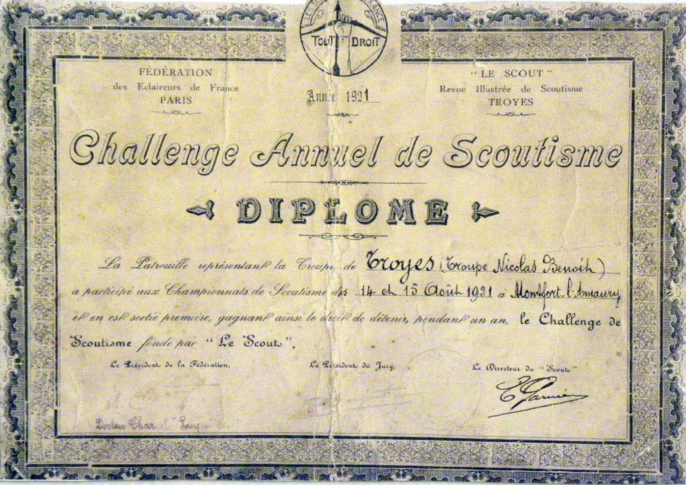 À noter : le diplôme est signé par le Docteur Charcot, « Pourquoi pas », président de la Fédération.