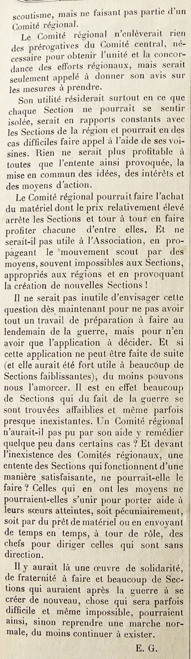 Un numéro de mars évoque un problème apparemment important : « entre Paris et la Province il y a des différences sensibles » que regrette un correspondant, ce qui entraîne une réponse circonstanciée et la proposition de mettre en place un « comité régional » : « il ne serait pas inutile d’envisager cette question dès maintenant pour ne pas avoir tout un travail de préparation à faire au lendemain de la guerre, mais pour n’en avoir que l’application à décider ».