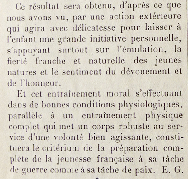 En juillet, le journal s’interroge sur l’influence des sports sur l’éducation morale et physique de la jeunesse suite à un article de la revue « Sporting ». Une divergence de vues apparaît sur un point majeur : alors que certains considèrent que « la pratique des sports comme la meilleure éducation physique et morale, le rédacteur marque son désaccord : sur cette composante « morale », il y a lieu de prévoir « une action extérieure qui agira avec délicatesse » :