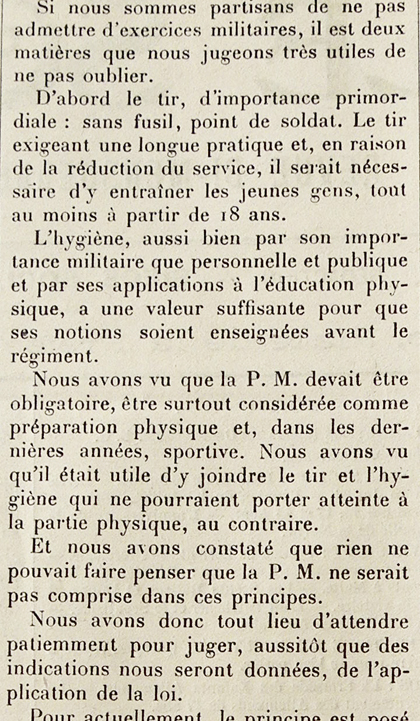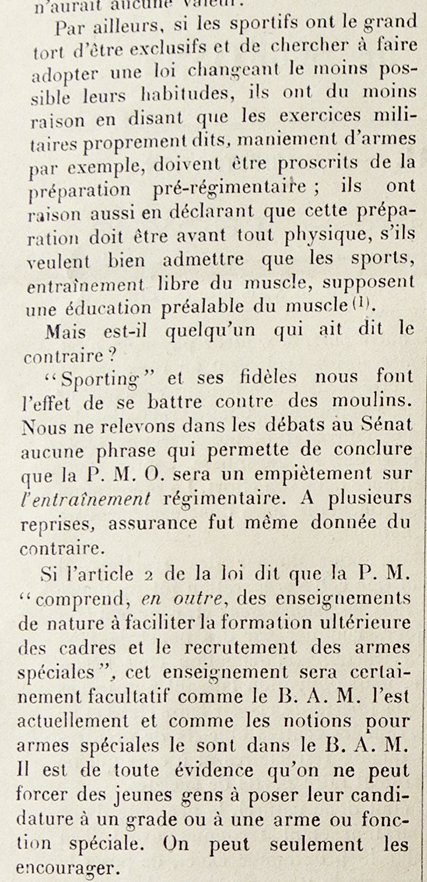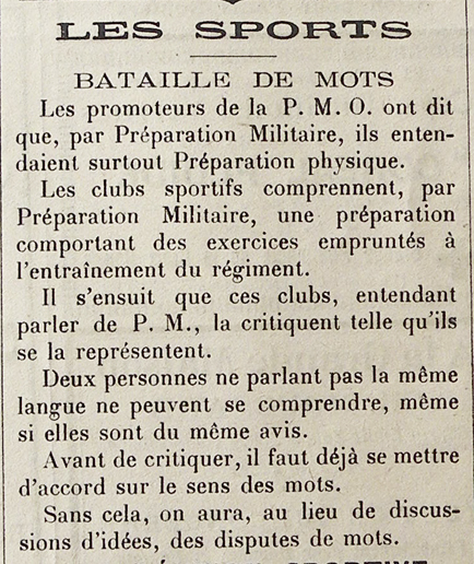 Suit une longue information sur le projet de « préparation militaire obligatoire » et ses modalités, qui met à nouveau en évidence une discussion avec le milieu sportif :