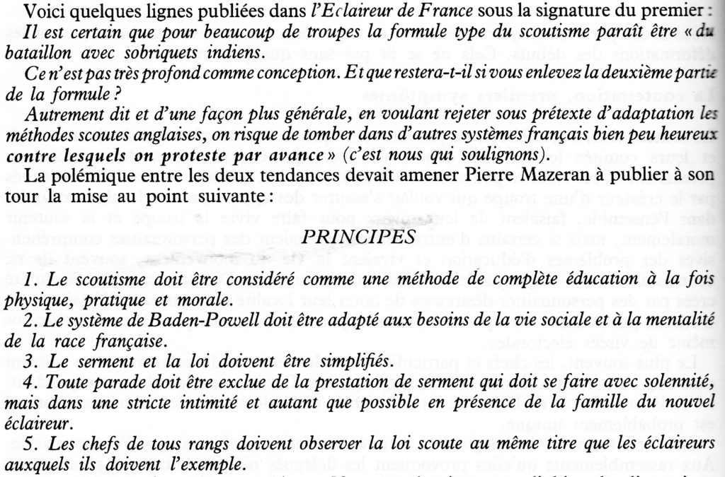 Ce titre, emprunté à l’ouvrage « les Éclaireurs de France de 1911 à 1951 » de Pierre Kergomard et Pierre François, résume la période de l’immédiate après-guerre qui va entraîner des modifications importantes dans les orientations et les activités du scoutisme E.D.F.