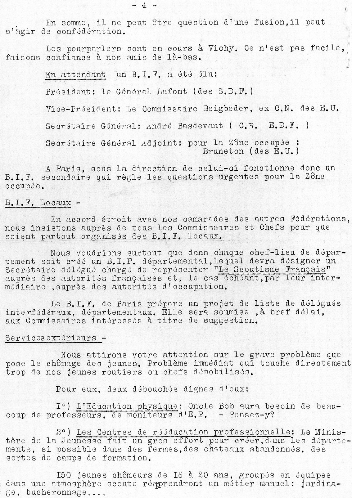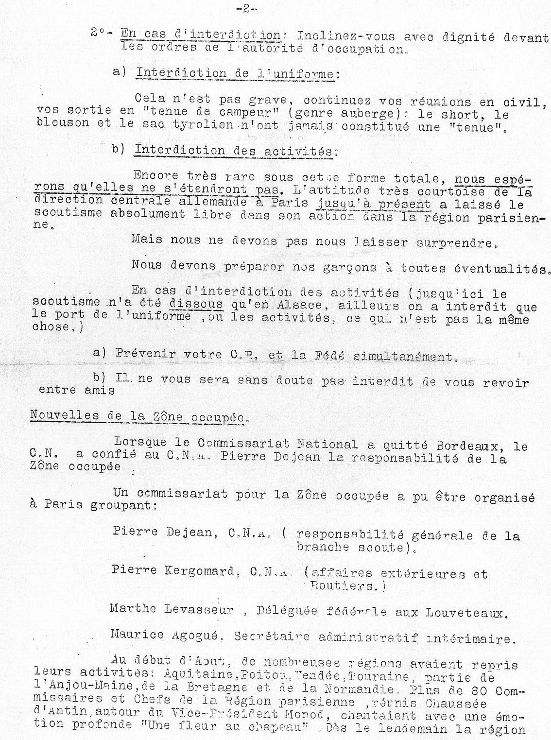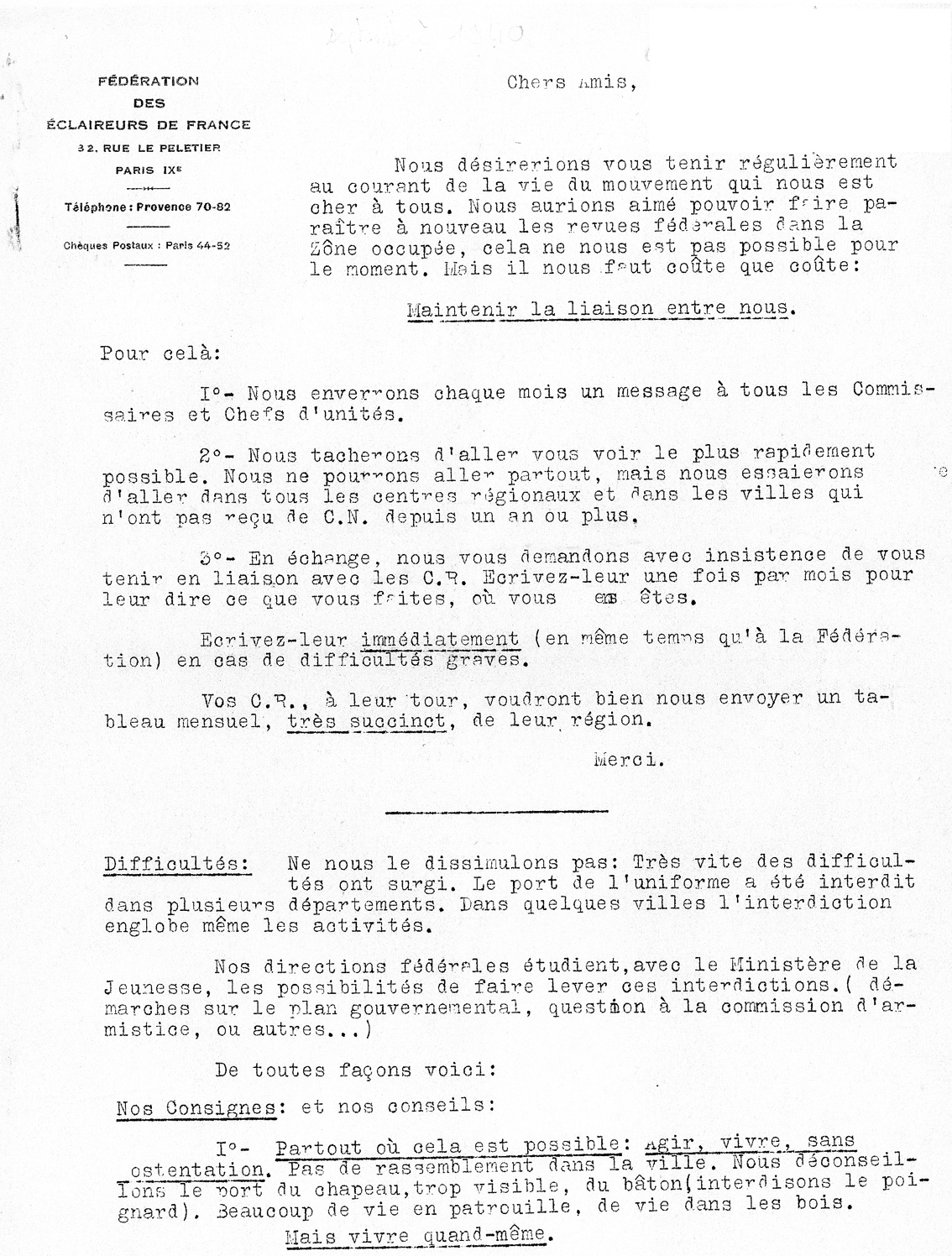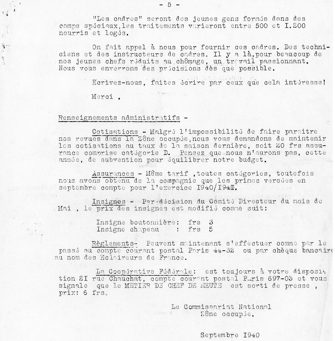À partir de septembre, des « directives » dont émises par l’échelon national ; elles évoquent la création du Scoutisme Français :
