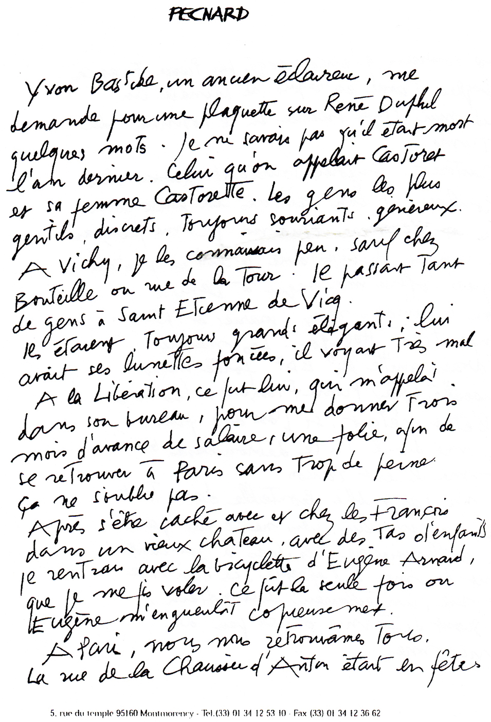 Indépendamment de la sympathique description du retour à Paris, on y trouvera la trace d’une décision drastique prise sous la pression des finances du Mouvement : son licenciement par Pierre François, qui a considéré que Pecnard… pourrait trouver du travail ailleurs !
