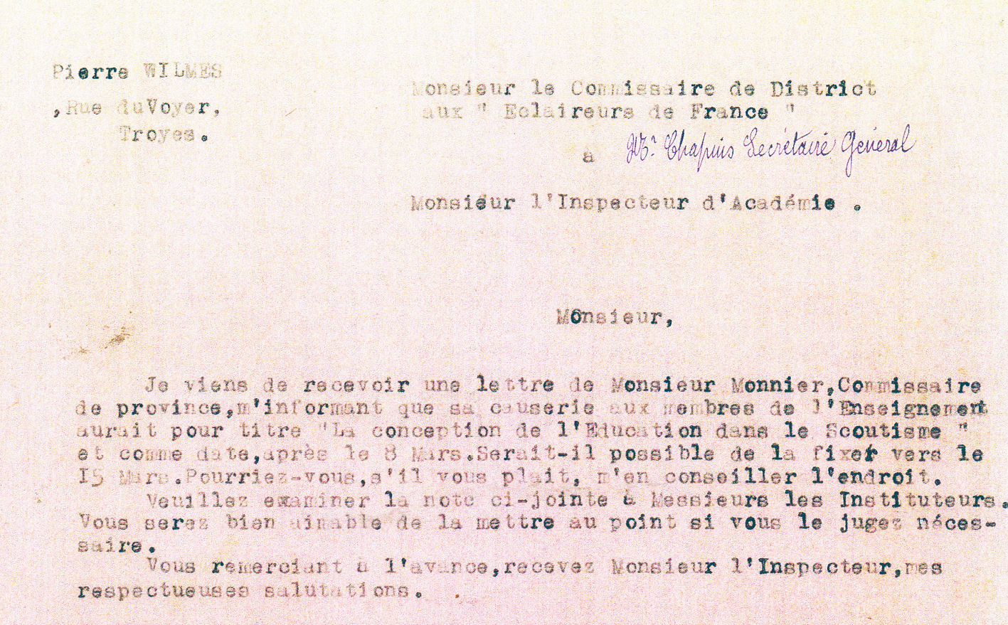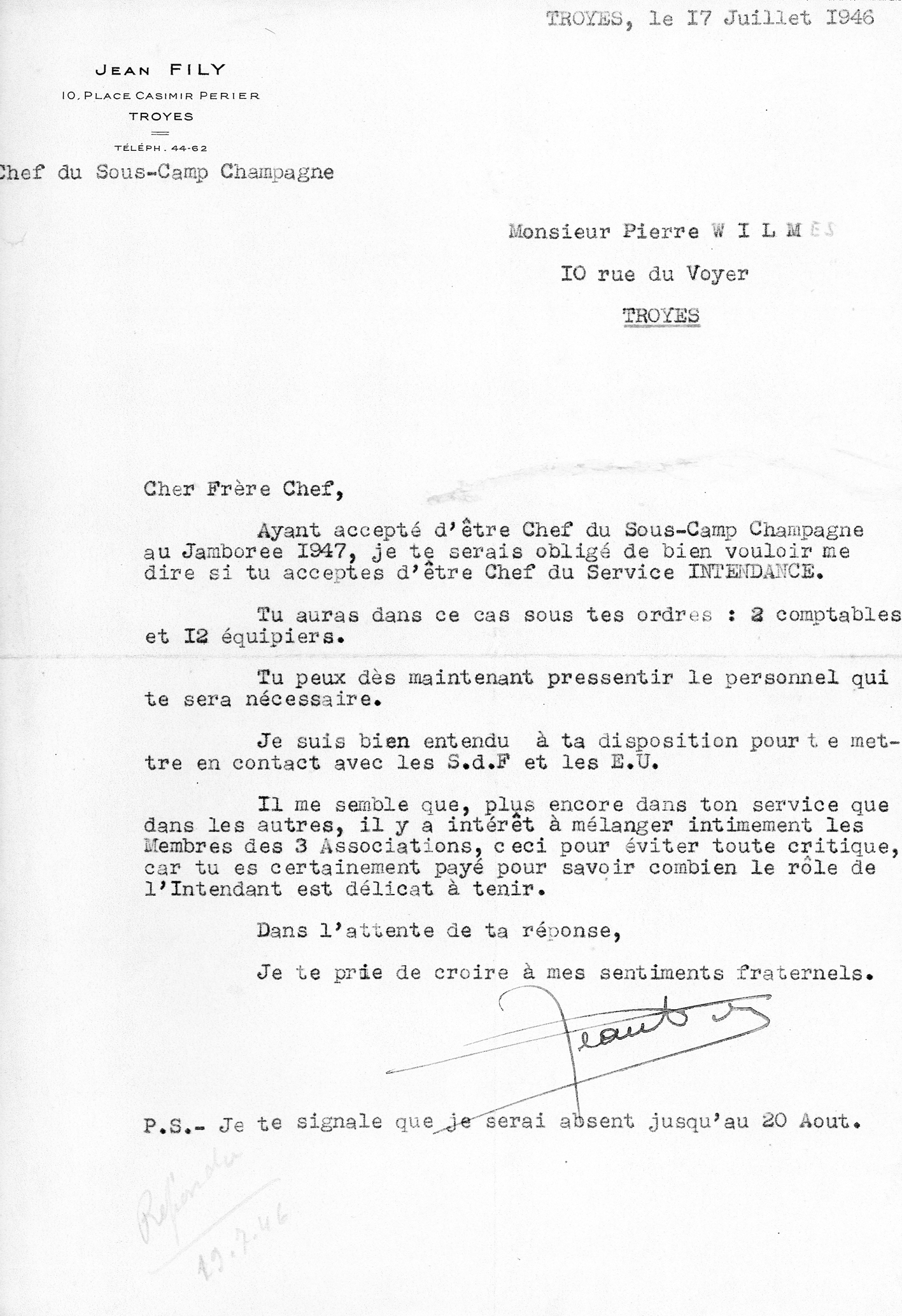 Pierre Wilmes est appelé à participer à la direction du camp Champagne au Jamboree de la Paix l’année suivante :