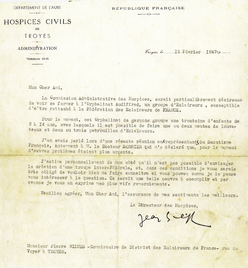 Sur la demande de la direction des Hospices, une unité va être créée en 1947  à l’orphelinat des garçons :