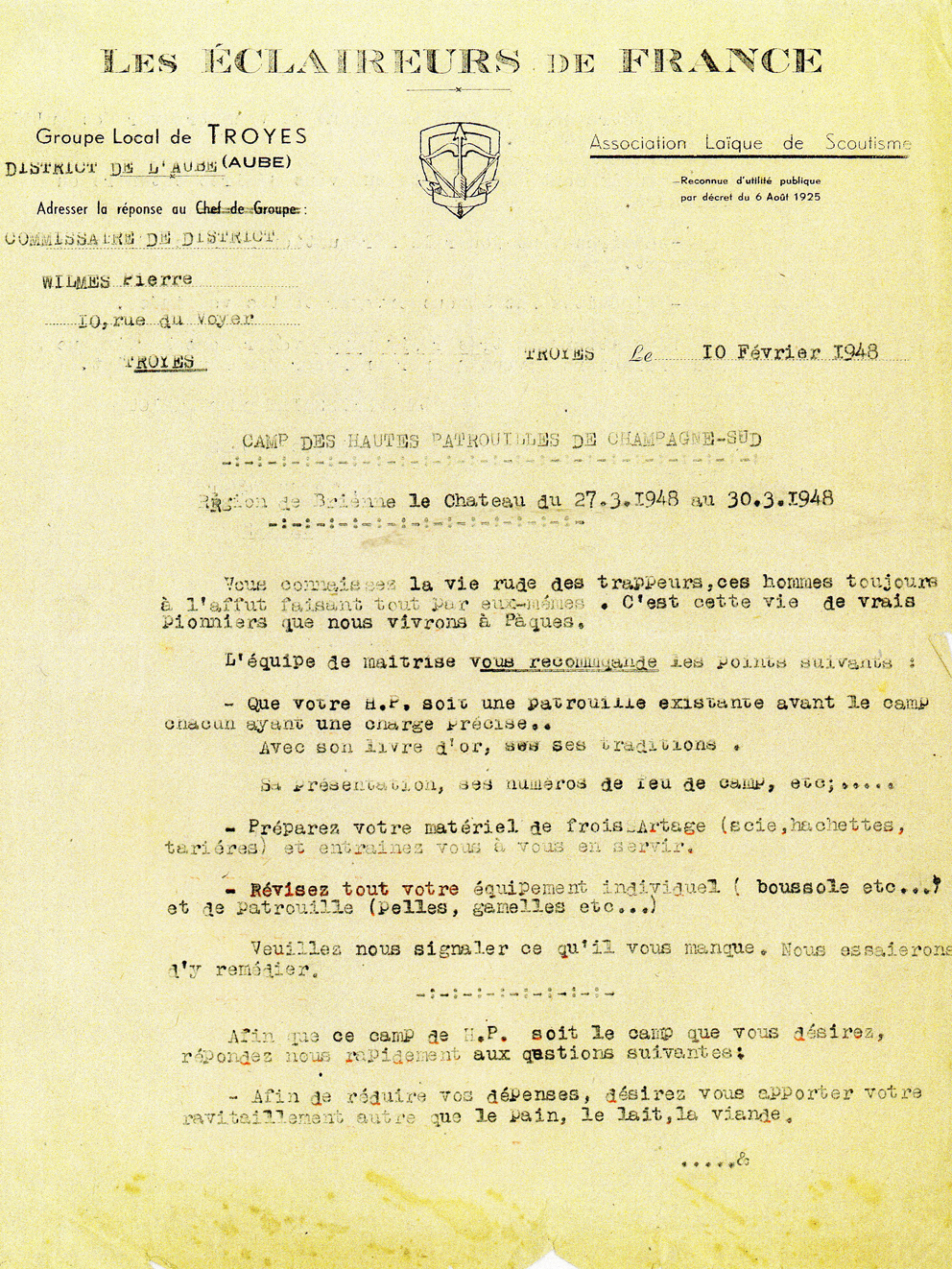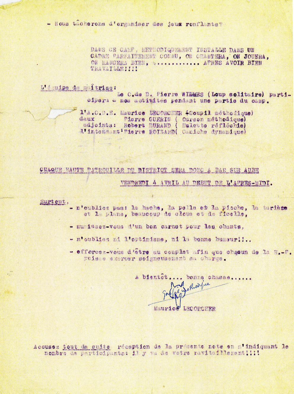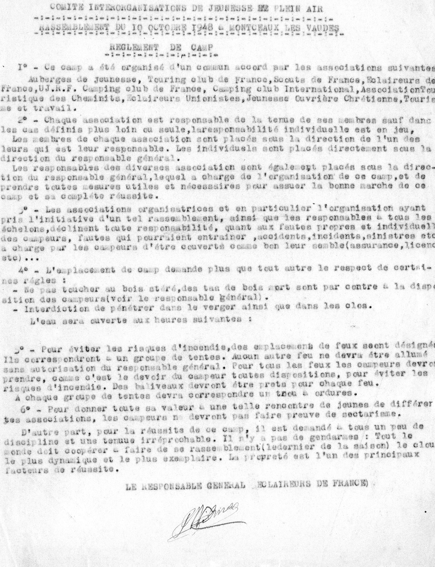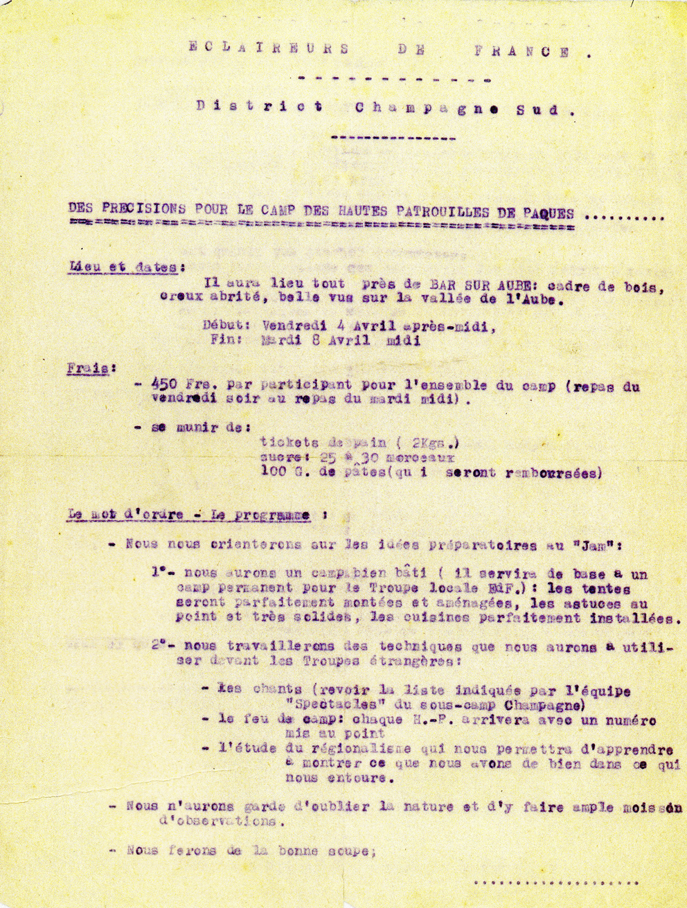 En 1949, les EDF participent à l’organisation d’une rencontre « interorganisations de jeunesse en plein air ». Pierre Wilmes en est le responsable et sa circulaire ne semble pas extrêmement optimiste en ce qui concerne les comportements des participants :