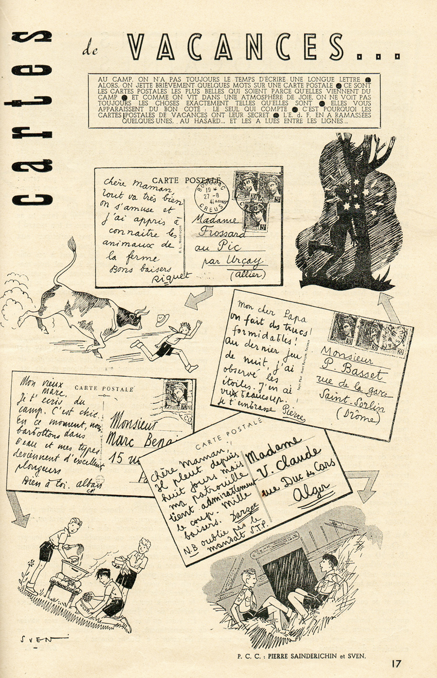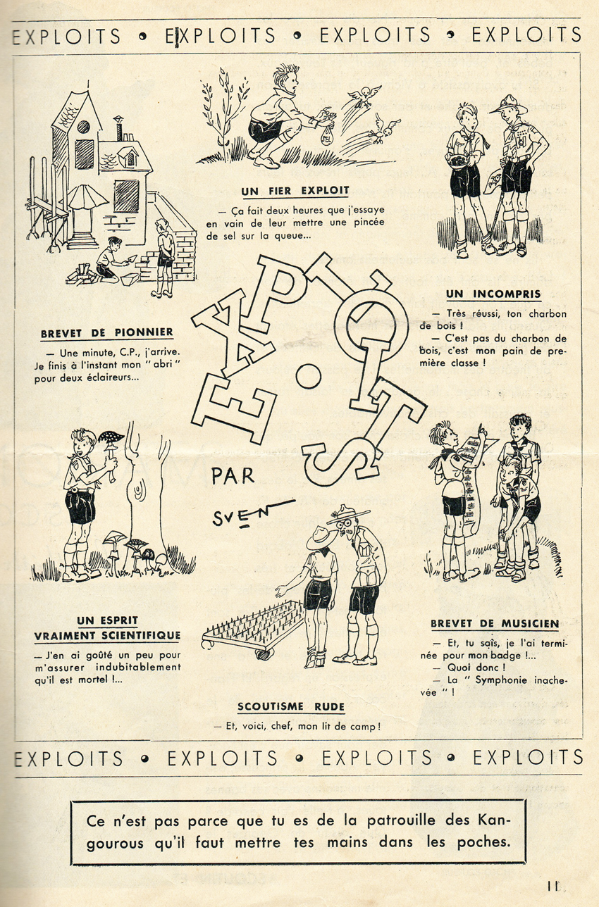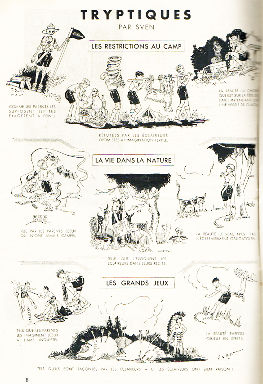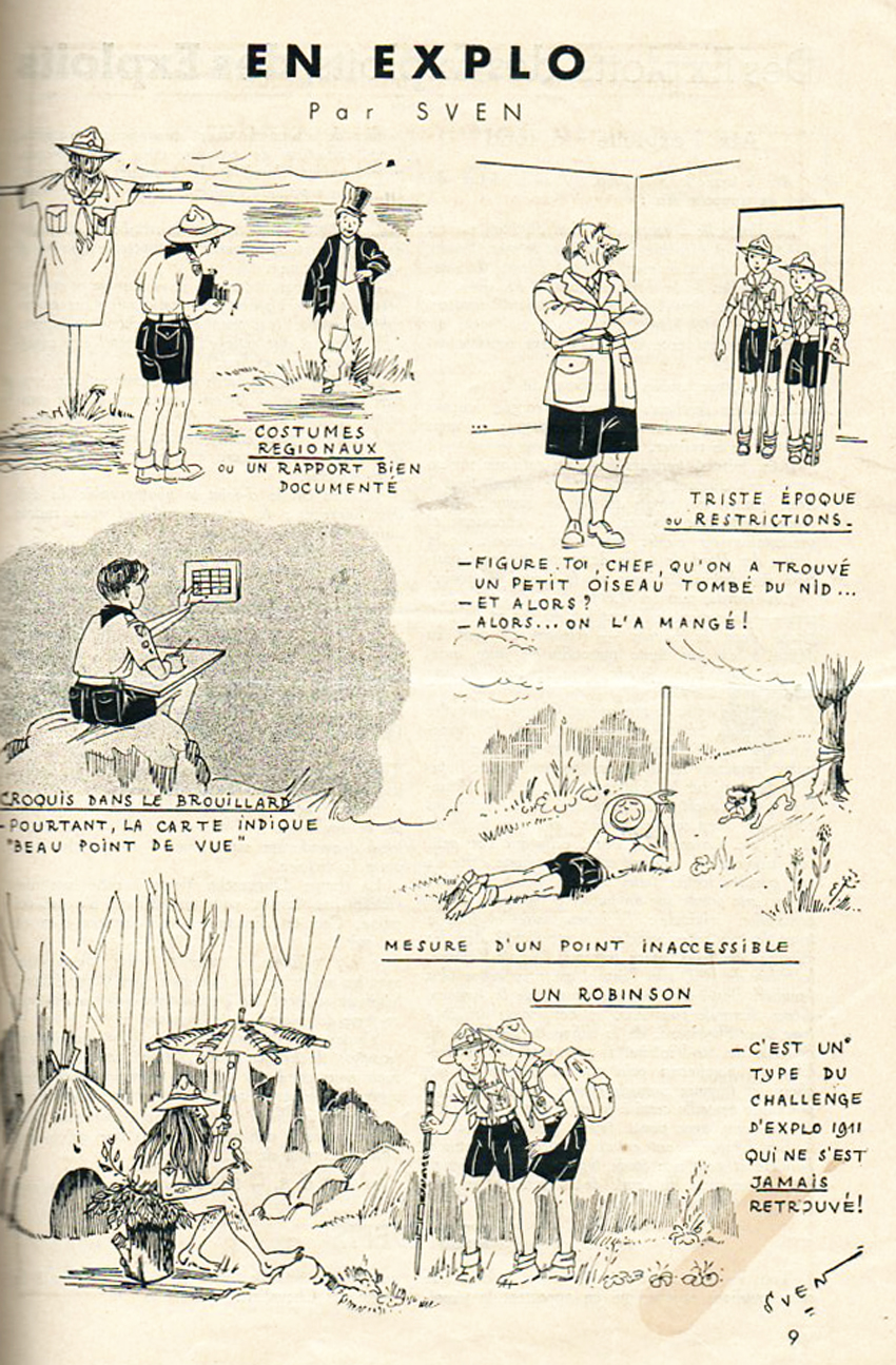 Pierre et Sven Sainderichin sont présents dans chaque numéro. Pierre y écrit des « grandes nouvelles » scoutes : « Le bon vieux temps », « On a volé une patrouille », « ‘Le retour », « La falaise du monde perdu »… Sven illustre une bonne partie des articles et appporte quelques pages d’un humour très lié… aux activités :