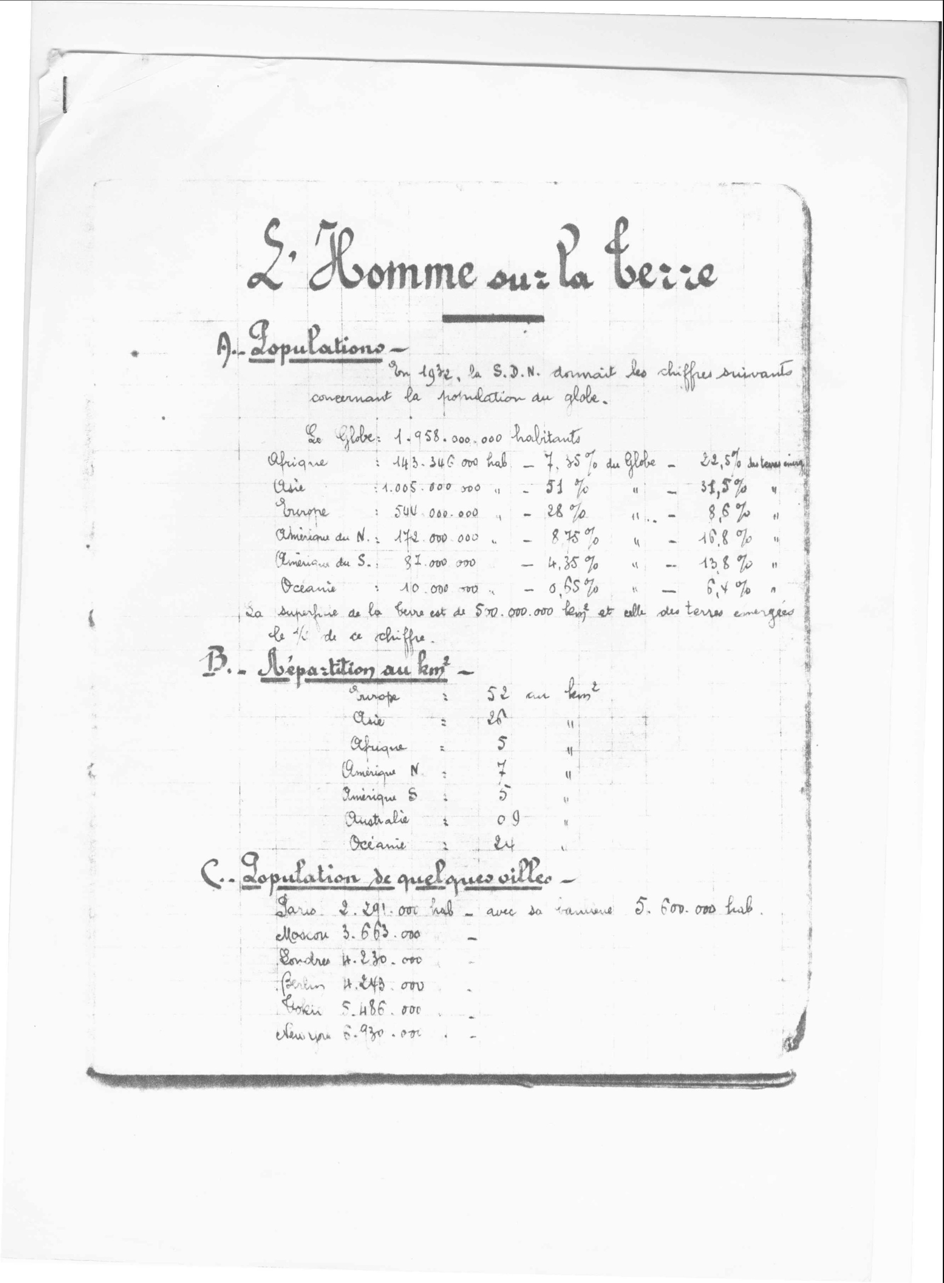 dans son cahier de géographie de 3ème année en 1941 à l’Ecole Normale William Ponty de Sébikotane