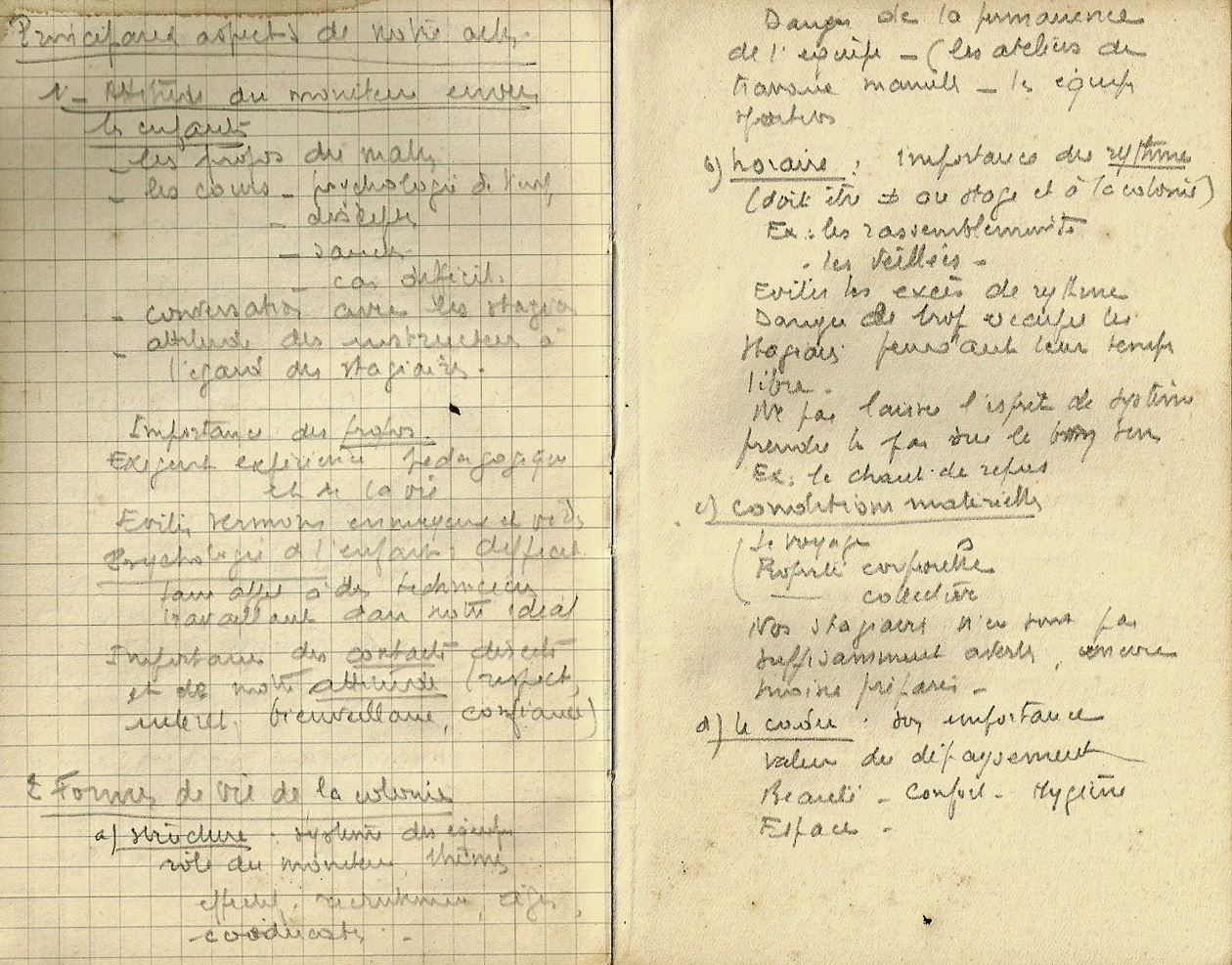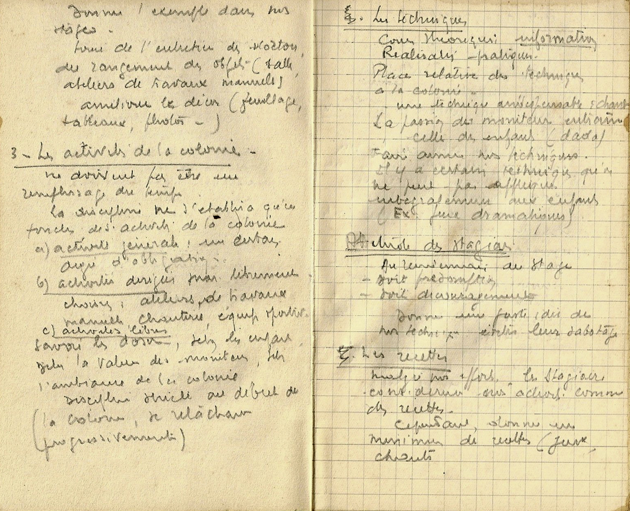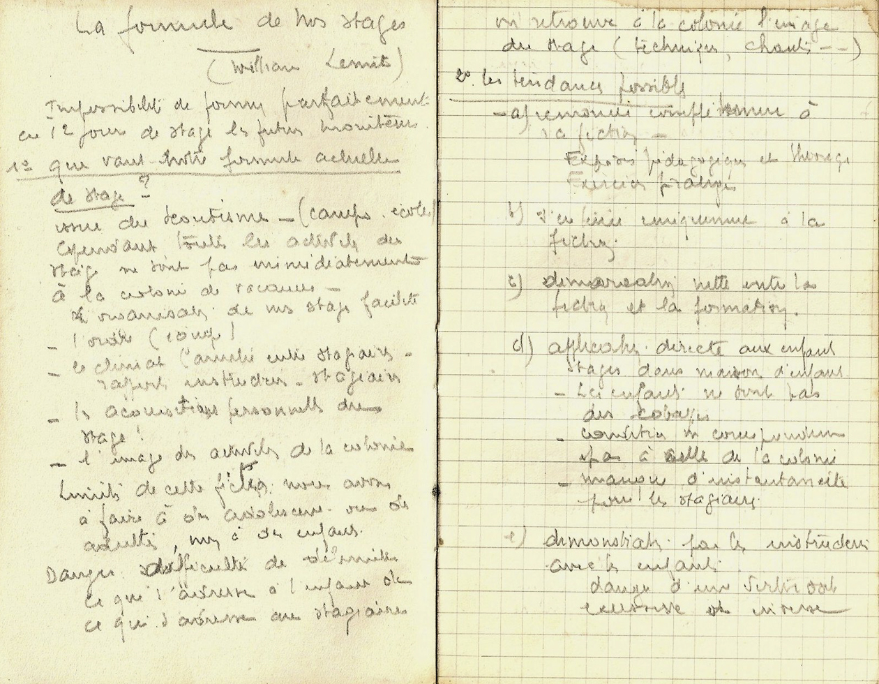 Mais il est tout aussi évident que les CEMEA, devenus, après quelques années, une association à part entière et totalement indépendante, devaient définir leur spécificité, c’est-à-dire, en tout premier lieu, leurs différences par rapport au scoutisme laïque dont ils étaient issus. Certains ont pu voir dans cette prise de distance un rejet très freudien du père, mais il semble, à la lecture des notes de ce carnet, qu’il s’agit tout simplement de la construction d’une vraie personnalité.