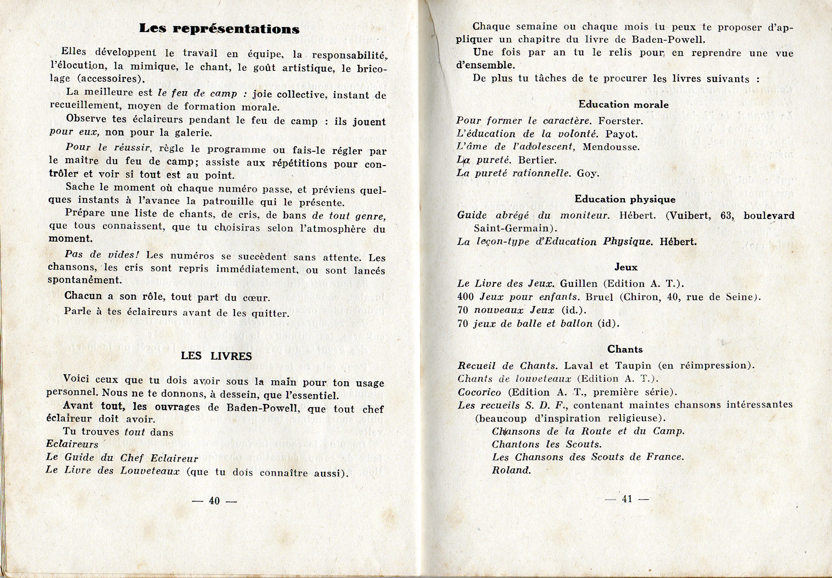 Le chapitre suivant présente les « instruments de travail » avec « un matériel d’enseignement » mais également l’utilisation du local ou des ressources locales ; une place particulière est donnée aux « représentations » et aux livres.