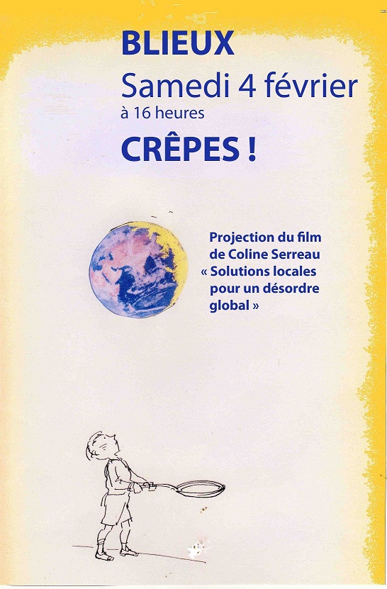 – Samedi 4 février : crêpes et projection du film de Coline Serreau : « Solutions locales pour un désordre global ».