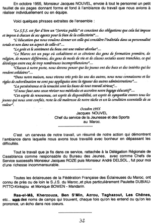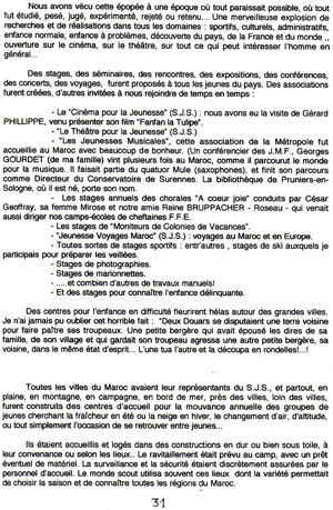 Le témoignage suivant, également transmis par Michel Delmas, fait suite à l’historique de la F.F.E. au Maroc commencé en 1927 (rubrique « Premier quart de siècle). Il est intéressant car il montre très bien le rôle important du scoutisme dans les principes d’animation de la jeunesse dans les années de l’immédiat après-guerre :