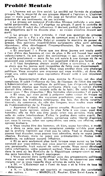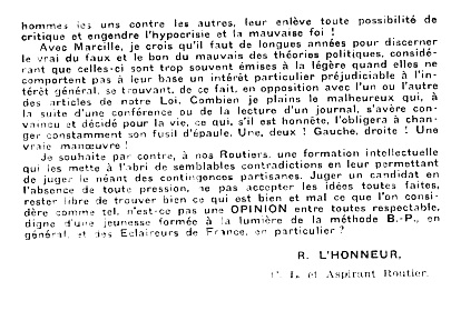Ceci ne nous empêche pas de dire que notre sentiment personnel est d’accord, en tous points, avec celui de Marcille. Observateur attentif de la nature, Marcille, dont vous avez lu dans « Le Routier » des remarquables études, a appris à regarder, à écouter, à se taire et à essayer de comprendre. »