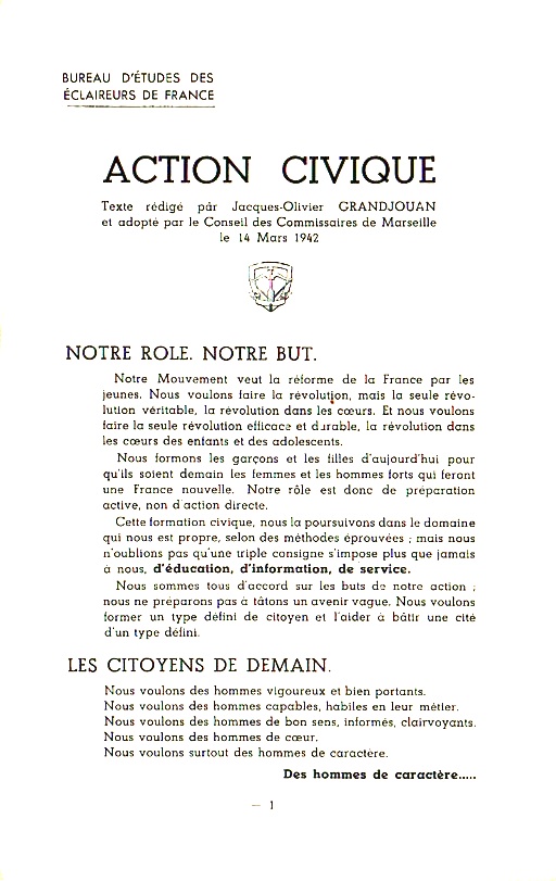 1942.03 : Une définition de « L’action civique » des E.D.F.