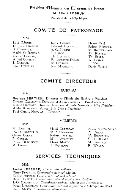 À noter l’existence d’un « comité de patronage » composé de personnalités, de toutes origines, extérieures au Mouvement, sous la présidence d’honneur du Président de la République.