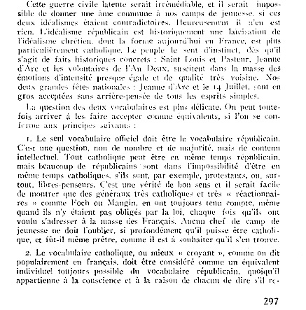 En ce qui concerne les cultures, le constat a des conséquences en ce qui concerne le vocabulaire : « Le malheur de la France est qu’elle possède deux vocabulaires collectifs et deux traditions : le vocabulaire religieux (…) et le vocabulaire républicain (…) » Il est donc nécessaire de définir une approche commune permettant une réelle coexistence :