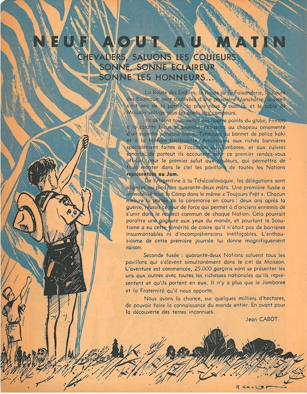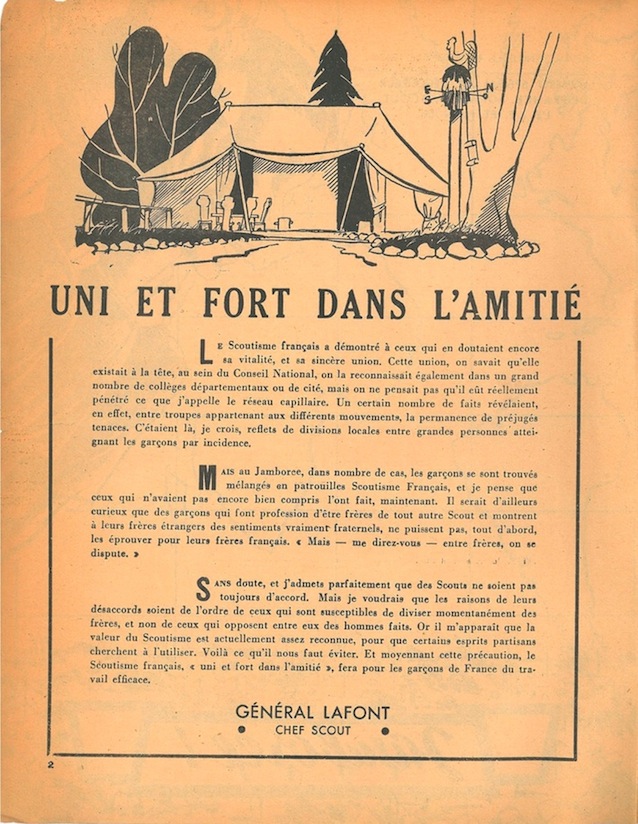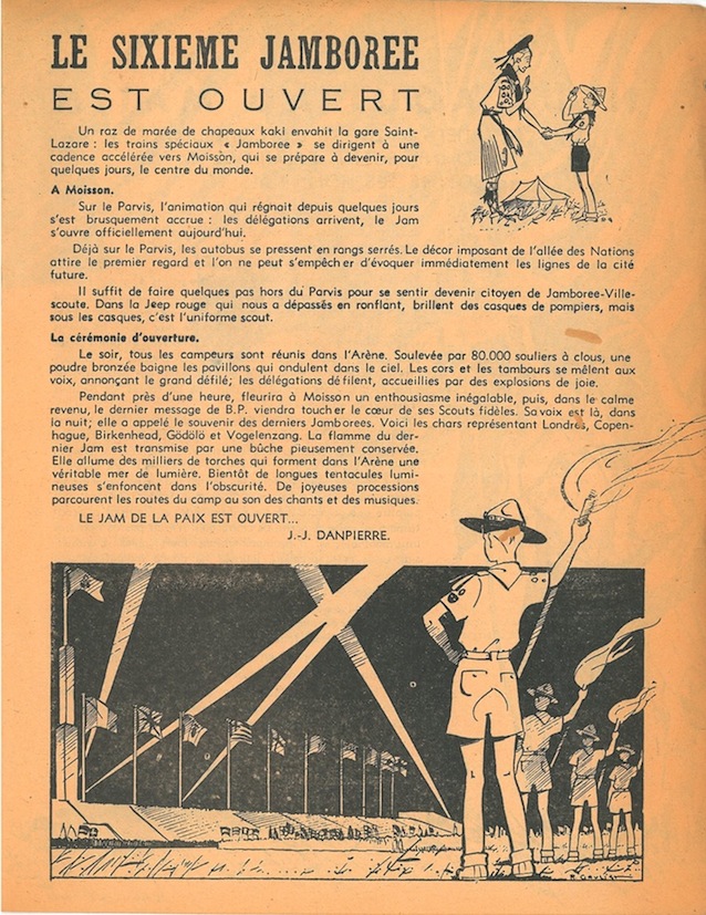 À cette occasion unique, les associations de la Fédération du Scoutisme Française ont édité des revues communes pour leurs branches Éclaireurs et Louveteaux. Il nous paru intéressant de reprendre certaines pages de ces revues, retrouvées par notre ami et correspondant fidèle H.P. Debord.