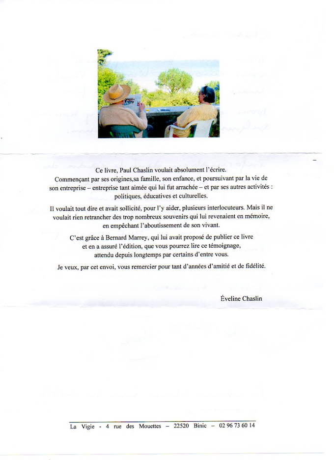 Quelques années avant son départ, Paul a pris contact avec nous pour que nous l’aidions à préparer cet ouvrage. Marie-Jeanne Villiers a été en relations en lui, et avec sa famille, à ce sujet. Nous avons donc fait partie de ces « interlocuteurs » évoqués par son épouse car il souhaitait donner toute sa place à son parcours dans notre Mouvement et dans l’éducation populaire.