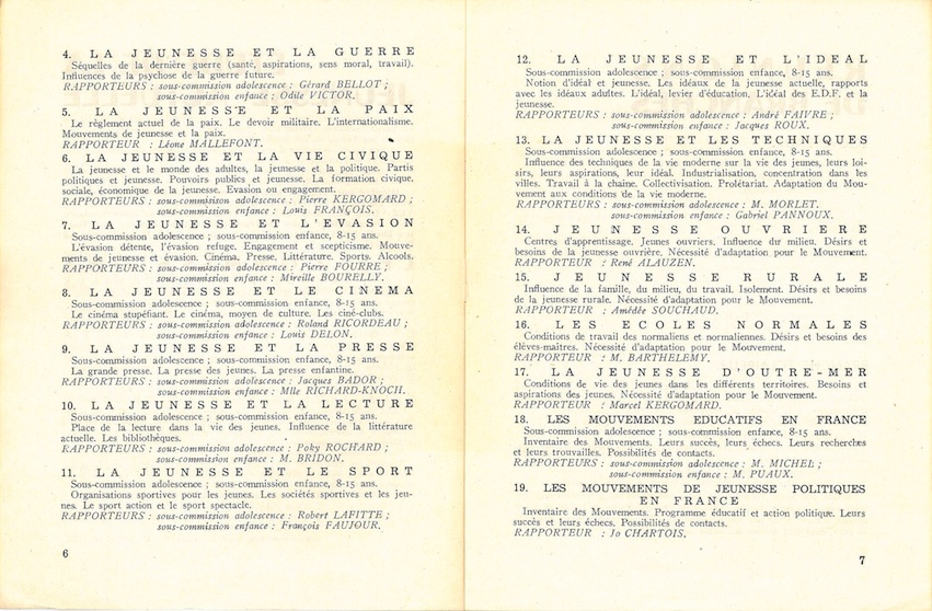 À noter que le groupe de travail » La jeunesse et le cinéma » est animé par Roland Ricordeau, dont nous avons trouvé un témoignage sur son action pendant la guerre. Et Paul Puaux anime le groupe de travail sur les mouvements éducatifs.