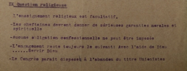 Le compte-rendu du congrès va un peu plus loin puisqu’il y est même question d’abandonner le titre d’Unioniste. Ces réflexions se situent deux ans avant la création de la Fédération Française des Éclaireuses qui aboutira à la mise en place des Éclaireuses « nouvelles » (ensuite dénommées « neutres ») et à la définition des « sections ».