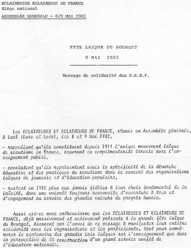 1982.05 : Les EEDF sont présents à la « fête laïque » du Bourget