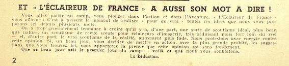 Mais aussi un appel aux contributions… pour éviter de donner l’impression que la revue évoque « un scoutisme idéal » :