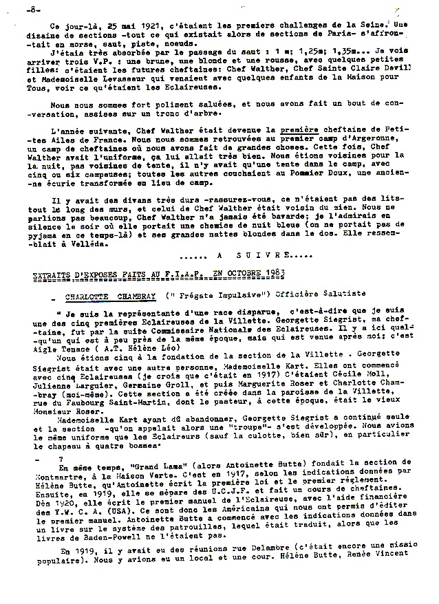 Pages empruntées au D.T. du printemps 85, avec l’aimable autorisation de Denise Zwilling, présidente de l’association des anciennes de la F.F.E..