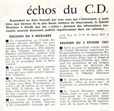 Depuis quelques années, les S.D.F. ont lancé, à leur branche éclaireur, de nouvelles expériences sous le nouveau nom de « raiders ». Les garçons sont appelés à pratiquer un scoutisme « pur et dur » censé revenir aux conceptions initiales de B.P.. Cette solution plaît à quelques responsables d’unités E.D.F. qui proposent de l’introduire dans le Mouvement (en se distinguant par des « bérets verts » rappelant ceux des parachutistes), orientation qui n’est pas approuvée par l’équipe nationale éclaireur car assez contradictoire avec celles définies par les « résolutions d’Angoulême » de 1947 introduisant la démocratie et l’entreprise dans le jeu de la branche. En dernier ressort, le Comité Directeur est donc saisi du problème et en appelle à l’entremise des provinces concernées. Le dossier n’est pas clos, il aboutira en 1960 à une crise interne à la région de Paris et au remplacement de son équipe. À noter que les S.D.F. ont eux-mêmes, après quelques années, abandonné cette orientation de la branche.