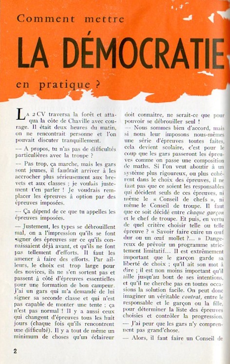 S’en suivent des conseils pratiques pour « faire du travail sérieux », pour « amener les gars et les filles à assumer ou à partager leurs responsabilités », pour analyser les résultats « sans y mettre d’esprit de critique à l’égard de tel ou tel »…
