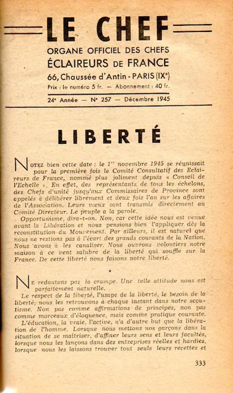 Cette définition trouvera sa suite dans les branches, en particulier dans un article d’Henry Gourin intitulé « Initiative et liberté » reprenant ce thème pour la branche Éclaireurs dans un numéro suivant de la revue.