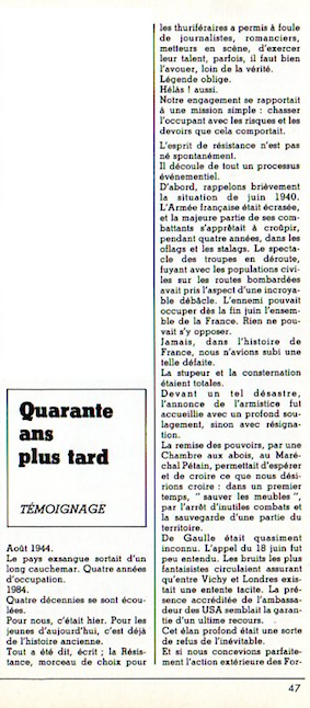 1984 : « Routes Nouvelles » apporte un témoignage de Maurice Hureau
