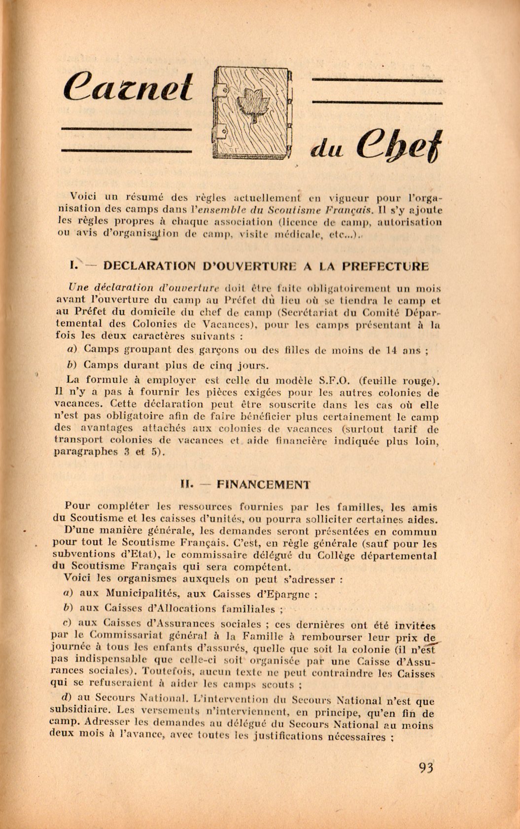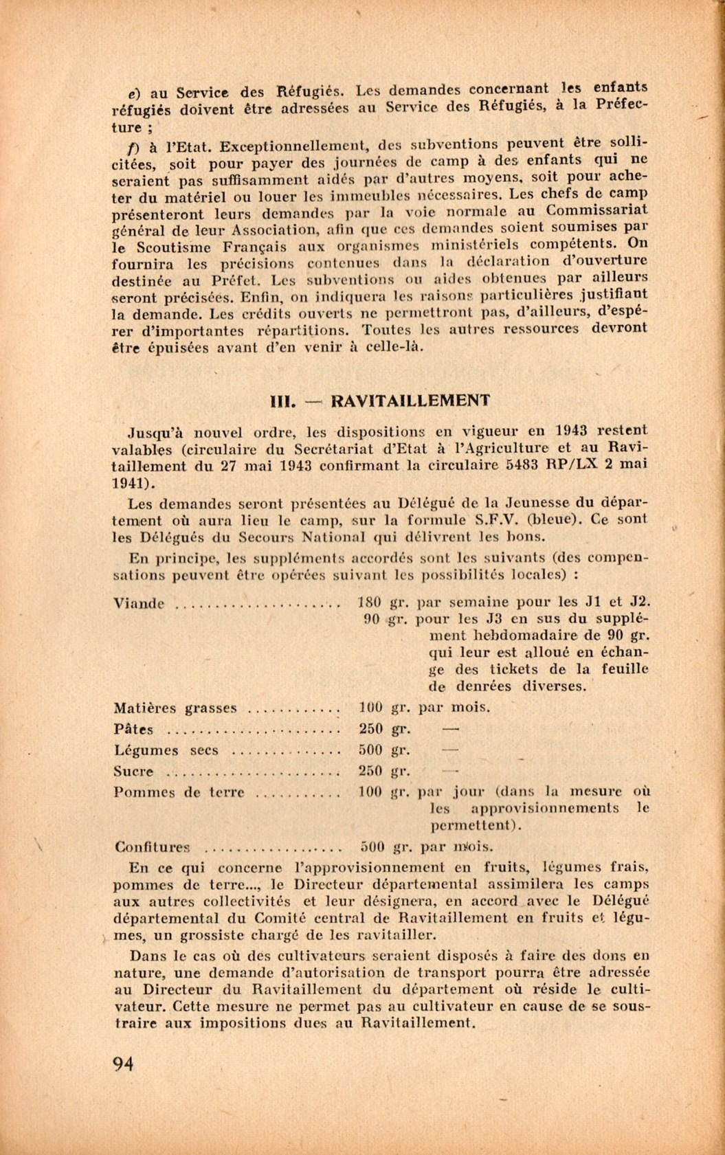 Sur un autre plan, il est intéressant de rappeler les contraintes d’ordre administratif qui encadrent les activités en zone Sud : déclaration d’ouverture, modalités de financement (via le Scoutisme Français), ravitaillement (à noter les « suppléments » accordés aux jeunes suivant leur catégorie, J1 et J2 correspondant grosso modo aux louveteaux et éclaireurs, J3 aux adolescents), transports avec tarifs réduits, transferts d’enfants, en général déconseillés entre départements et soumis à autorisations.