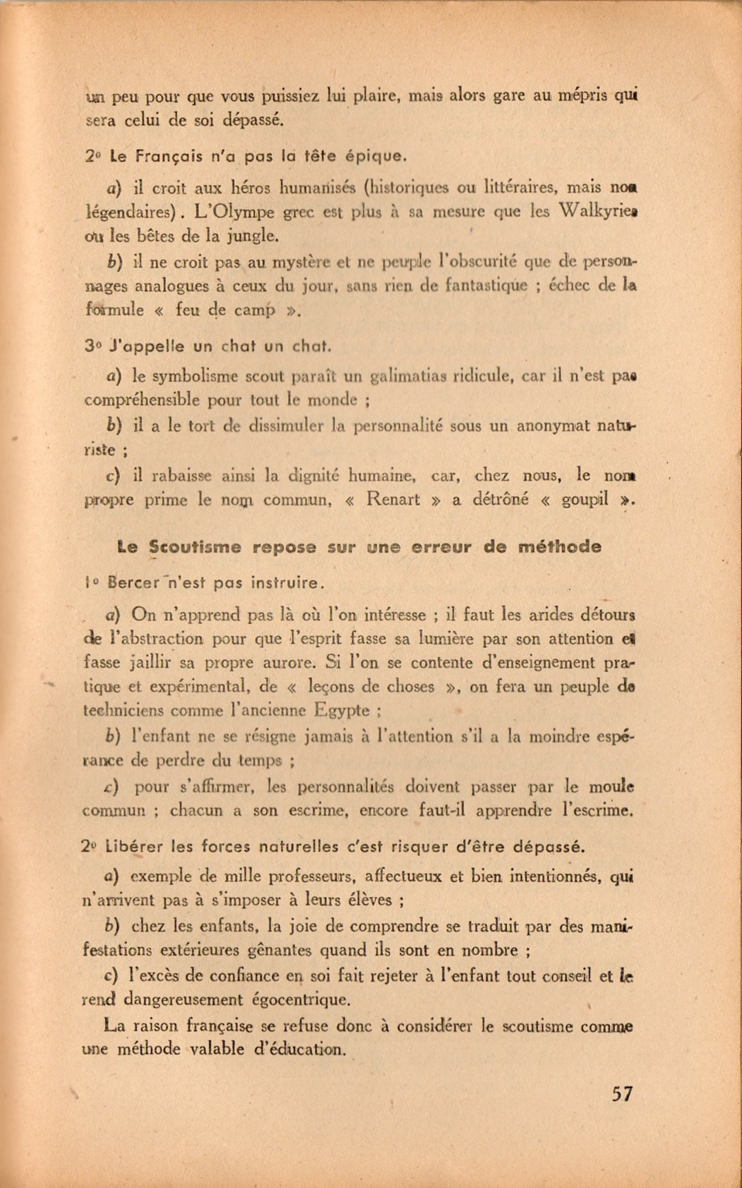 Les articles d’Henri Joubrel, à plusieurs reprises, posent, souvent sous forme de tribune libre, des questions qui semblent mettre en cause un certain nombre de vérités révélées. Dans un numéro précédent, l’accent était mis sur le reproche de « puérilité » souvent fait au scoutisme, surtout dans le contexte des activités entre associations mises en place par les autorités ministérielles. C’est donc un « clan de chefs » qui va prolonger cette réflexion, à partir d’une critique négative qui devrait permettre à chacun de découvrir les « éléments stables » pour « un scoutisme meilleur ».