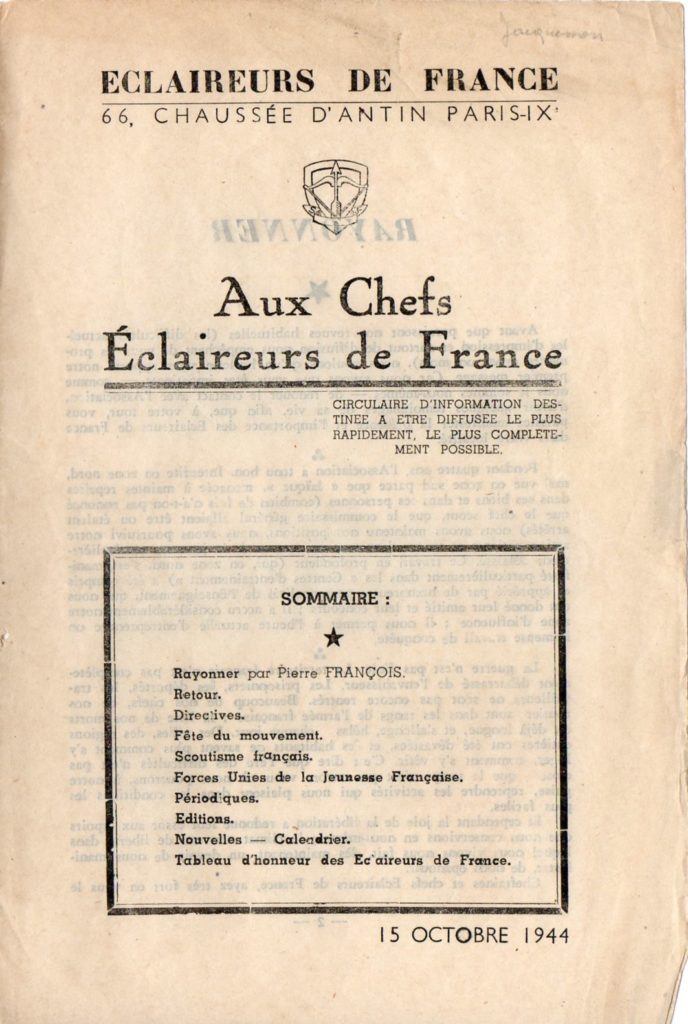 1944.10 : Une information « aux chefs Éclaireurs de France »