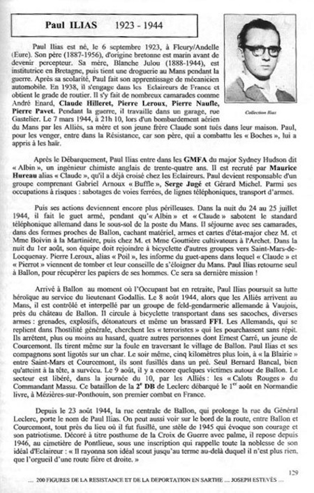 J.J. Gauthé nous en indique la source : il s’agit d’un ouvrage de Joseph Estèves, « 200 figures de la Résistance et d e la déportation en Sarthe », autoédité, 2009. « On doit bien ça à l’auteur, son bouquin est super. http://jesteves.online.fr/. Les fiches de plusieurs EDF du Mans y figurent »