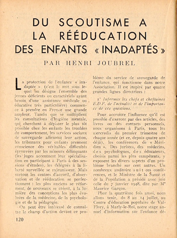 1948 : Le Mouvement est très impliqué dans l’action en direction des jeunes « inadaptés »
