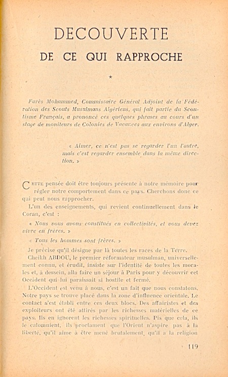 … avec une réflexion sur l’accueil des jeunes Musulmans d’Algérie.